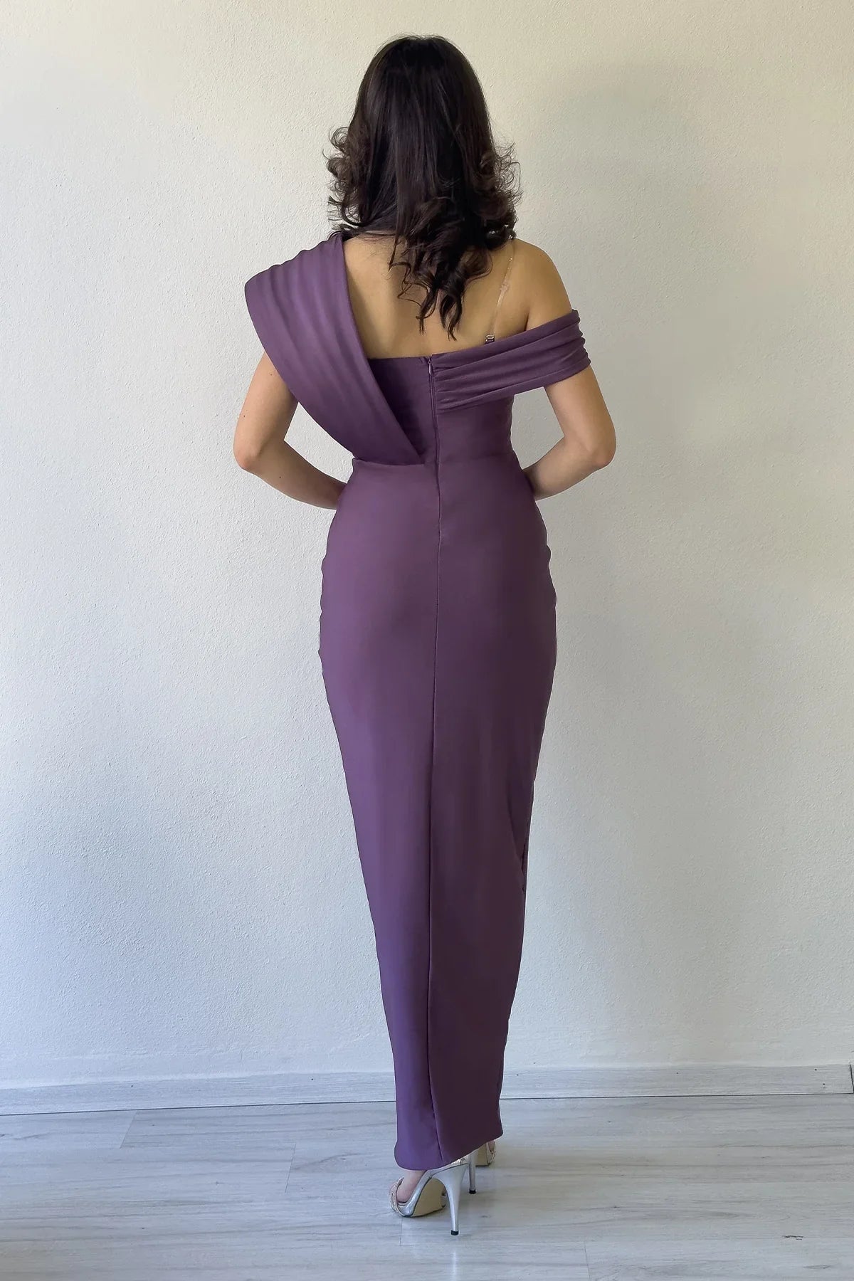 Fliederfarbenes, einseitig schulterfreies, verziertes Meerjungfrauen-Abendkleid